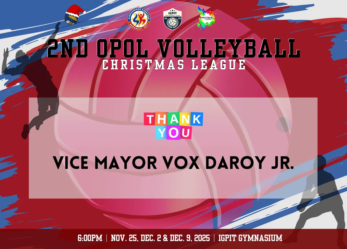 Igpit Volleyball Club (IVC) is the recognized ball club of volleyball players in Igpit, Opol, Misamis Oriental — proudly accredited by the Sangguniang Kabataan of Igpit and Igpit Barangay Council. Be part of a growing community where passion, teamwork, and sportsmanship come first.